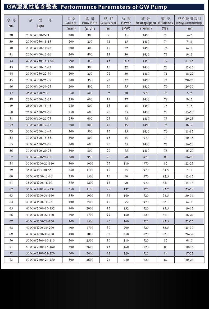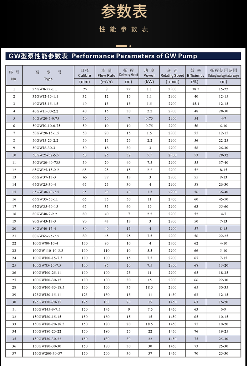 GW型管道式無堵塞排污泵是在引進國外先進技術(shù)的基礎(chǔ)上,結(jié)合國內(nèi)水泵的使用特點而研制成功的新一代泵類產(chǎn)品,具有節(jié)能效果顯著、防纏繞、無堵塞、自動安裝和自動控制等特點。在排送固體顆粒和長纖維垃圾方面,具有獨特效果。該系列排污泵采用獨特葉輪結(jié)構(gòu)和新型機械密封,能有效地輸送含有固體物和長纖維。葉輪與傳統(tǒng)葉輪相比,該泵葉輪采用單流道或雙流道形式,它類似于一截面大小相同的彎管,具有非常好的過流性,配以合理的蝸室,使得該泵具有效率高、葉輪經(jīng)動靜平衡試驗,污水提升泵使泵在運行中無振動。