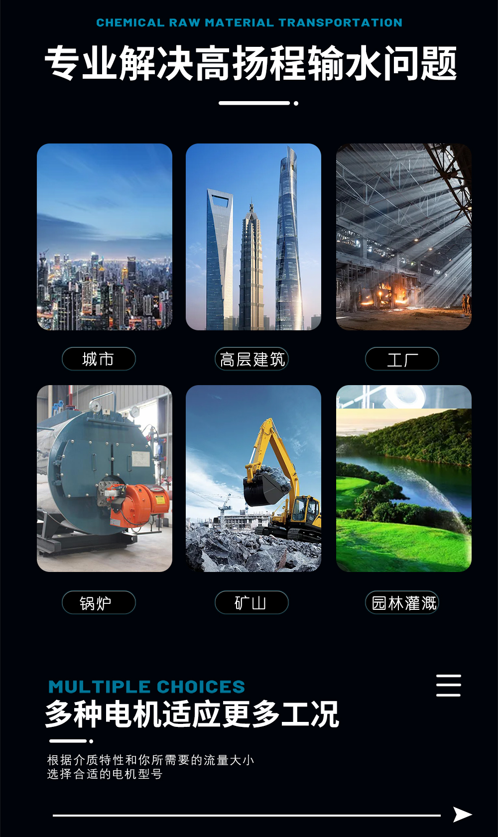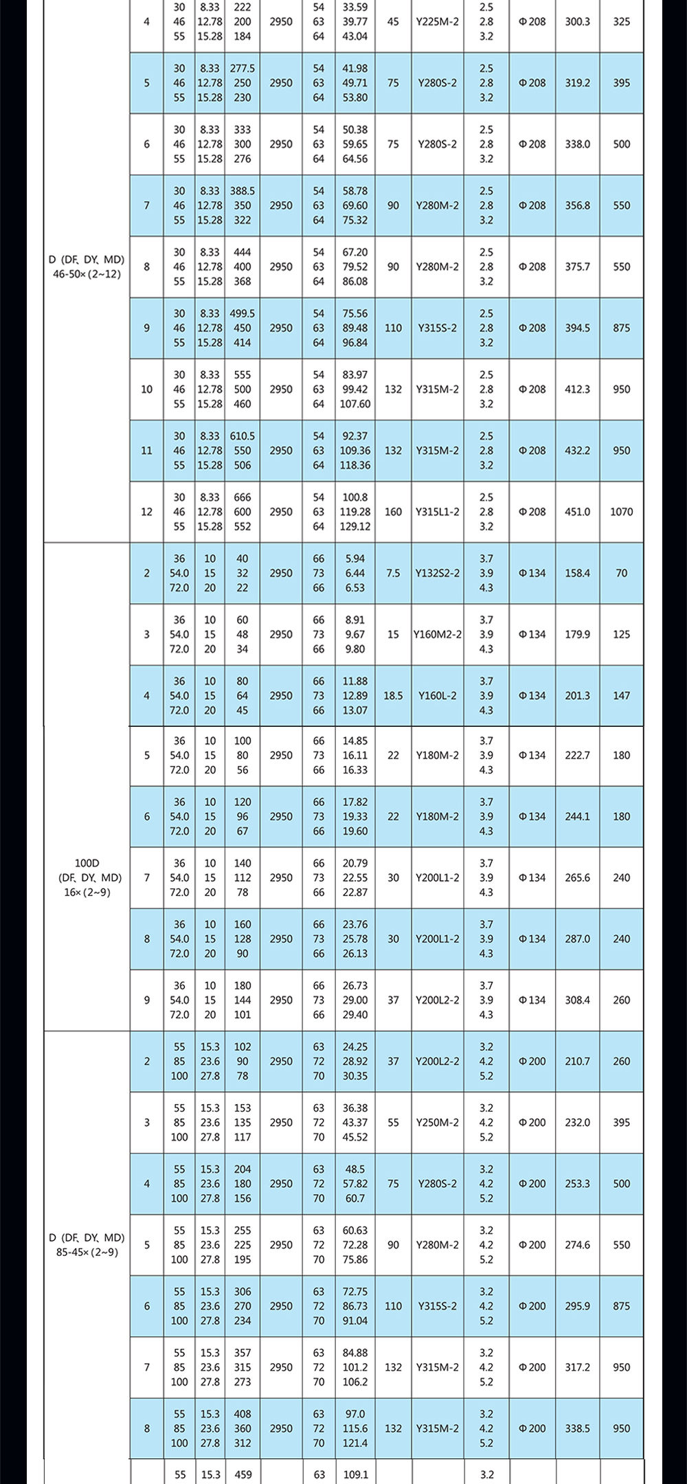 D型臥式多級(jí)泵系單吸多級(jí)分段式離心泵,供輸送清水或物理化學(xué)性質(zhì)類似于水的其它液體,液體的溫度不得超過(guò)80℃。具有效率高、性能范圍廣、運(yùn)行安全平穩(wěn)、噪音低、壽命長(zhǎng)、安裝維修方便等特點(diǎn)。也可以通過(guò)改變泵過(guò)流部件材質(zhì)、密封形式和增加冷卻系統(tǒng)用于輸送熱水、油類、腐蝕性或含磨粒的介質(zhì)。產(chǎn)品執(zhí)行JB/T1051-93《多級(jí)清水離心泵型式與基本參數(shù)》標(biāo)準(zhǔn)。