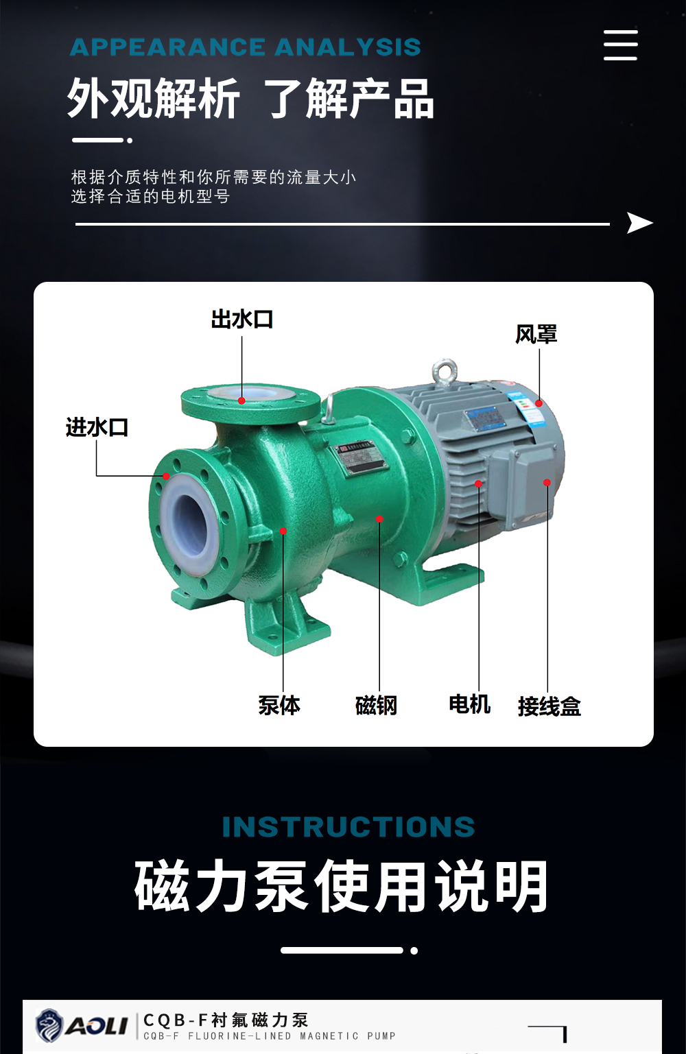 CQB-F氟塑料磁力泵采用磁力耦合傳動,不存在動密封點,因此防止了一般軸傳動式離心泵軸封外跑、冒、滴、漏的現(xiàn)象的塑料磁力泵類型。過流部件采用氟塑料及高純度工業(yè)陶瓷制成,具有優(yōu)異的耐腐性及密封性,因此本產(chǎn)品被廣泛適用于化工、制酸、制堿、冶煉、稀土、農(nóng)藥、染料、醫(yī)藥、造紙、電鍍、電解、酸洗、無線電、化成箔、科研機構(gòu)、國防工業(yè)等行業(yè)??奢斔徒橘|(zhì):輸送任意濃度的酸性、堿性、油類、稀有貴重液體、毒性液體、揮發(fā)性的化學介質(zhì)。特別是易燃、易漏、易爆液體化學介質(zhì)的輸送。