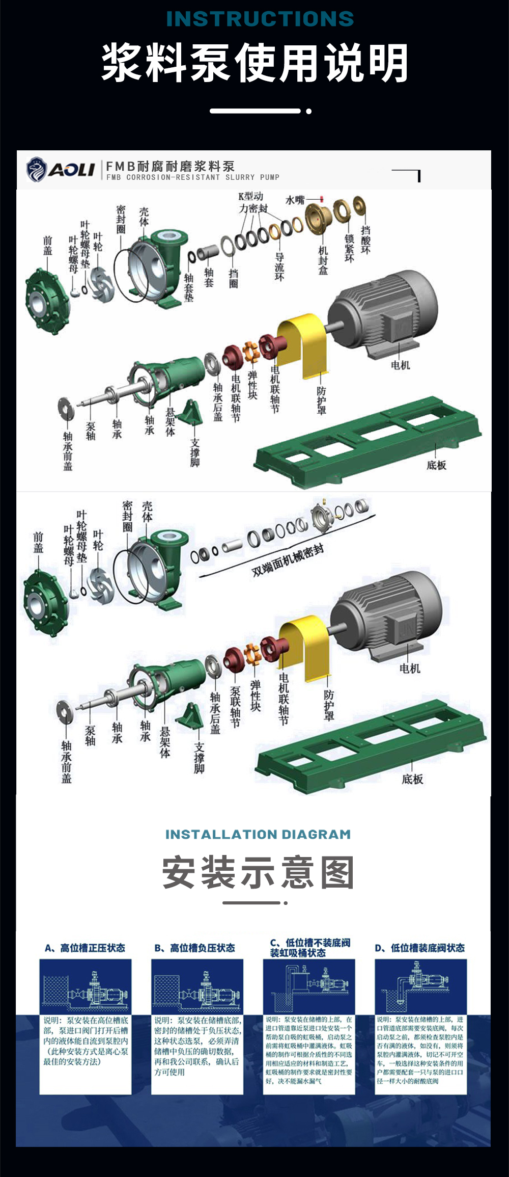 FMB耐腐耐磨砂漿泵簡(jiǎn)稱“FMB砂漿泵”,過流部件采用鋼襯目前國內(nèi)新一代耐腐耐磨合金制造。該泵集優(yōu)異的耐磨性、耐沖擊性、耐腐蝕性和耐高溫性等突出的優(yōu)點(diǎn)于一身,設(shè)計(jì)有K形動(dòng)力密封(FMB-ZK)、內(nèi)裝單端面機(jī)械密封(FMB-ND)、內(nèi)裝雙端面機(jī)械密封(FMB-NS)三種密封結(jié)構(gòu),能適應(yīng)各種工況。特別適合輸送酸、堿性清液或料漿;冶煉行業(yè)各種腐蝕性礦漿;各種有機(jī)酸,強(qiáng)氧化劑,環(huán)保行業(yè)各類污水等,應(yīng)用范圍十分廣泛。