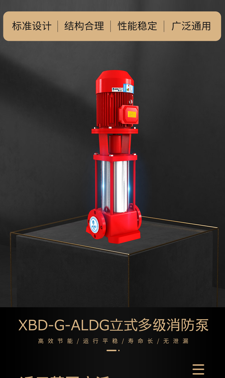 XBD-ALDG型立式單吸多級消防泵組是在原有立式多級管道泵基礎(chǔ)上根據(jù)消防泵的新標(biāo)準(zhǔn)要求而開發(fā)出的新一代XBD管道型中低壓消防泵組產(chǎn)品。供輸送不含固體顆粒的清水及物理化學(xué)性質(zhì)類似于水的液體之用。適用于各種場合如住宅、賓館、辦公大樓、商業(yè)大樓、工廠、醫(yī)院等處的消防供水。