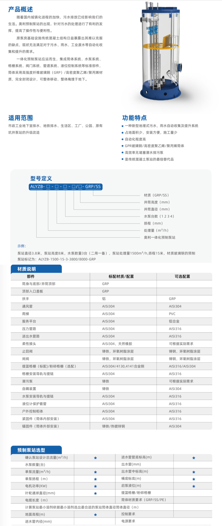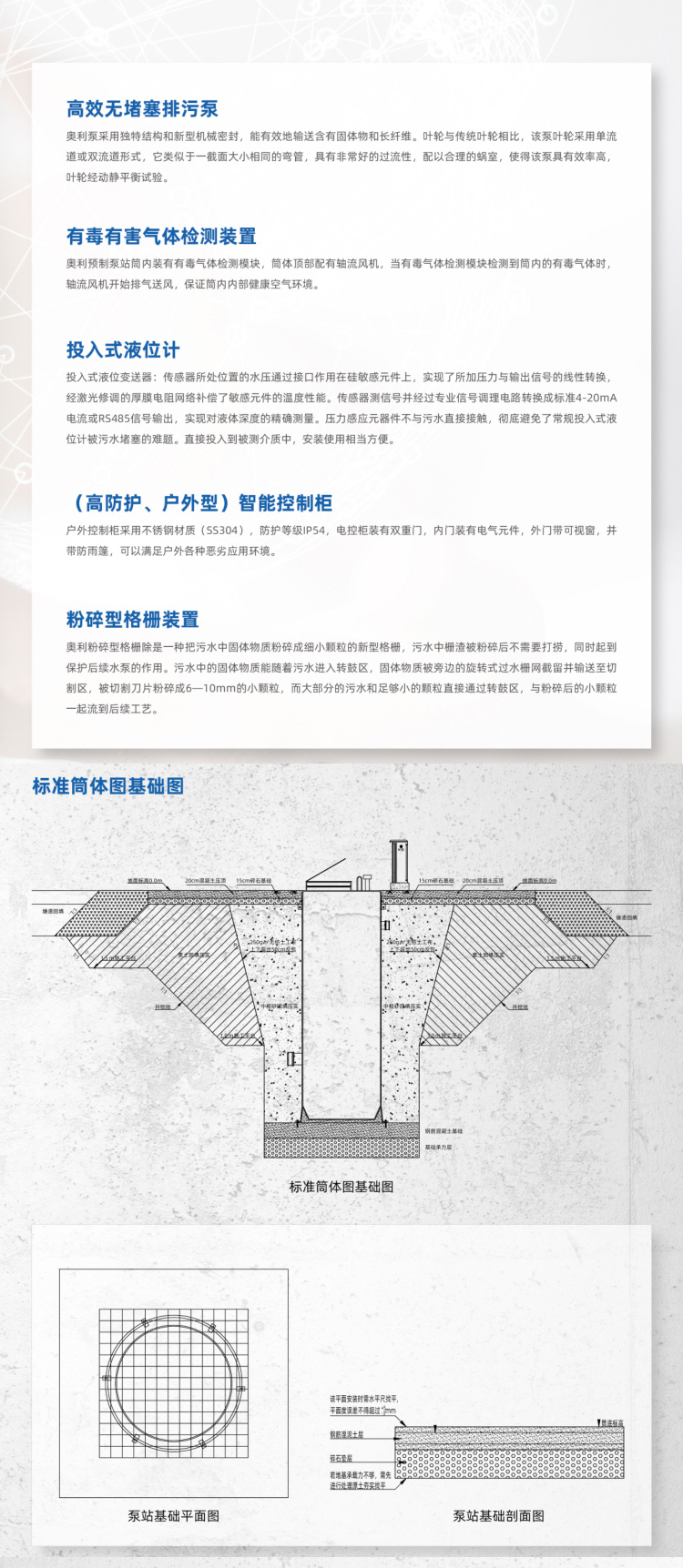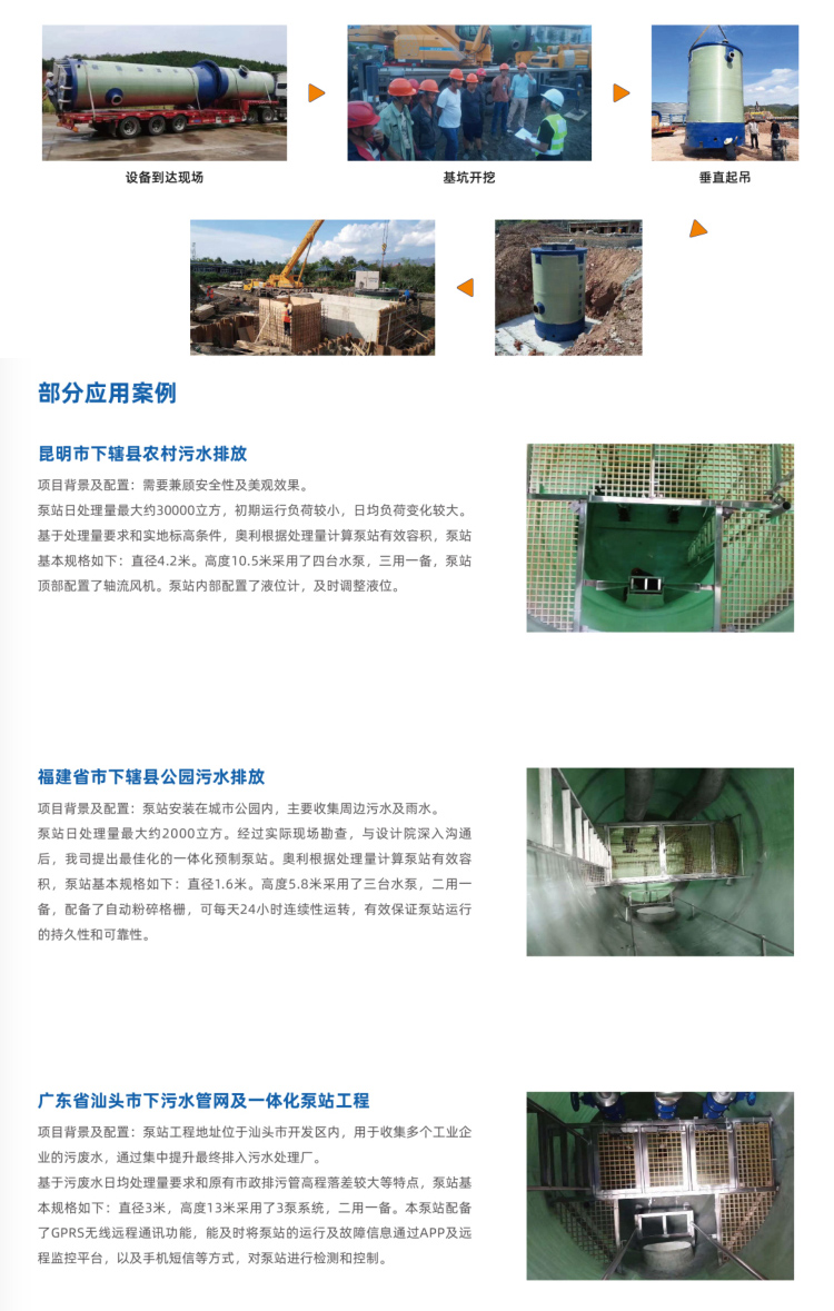 隨著國(guó)內(nèi)城鎮(zhèn)化進(jìn)程的加快,污水排放已經(jīng)影響我們的生活。奧利預(yù)制泵站的出現(xiàn),針對(duì)污水的處理進(jìn)行了有利的發(fā)揮,提高了操作性與便利性。原泵房基礎(chǔ)設(shè)施傳統(tǒng)混凝土結(jié)構(gòu)日益暴露出其難以克服的缺點(diǎn),現(xiàn)狀無(wú)法滿足對(duì)于污水、雨水、工業(yè)廢水等自動(dòng)化收集和提升的需求。一體化預(yù)制泵站應(yīng)運(yùn)而生,集成筒體系統(tǒng)、水泵系統(tǒng)、格柵系統(tǒng)、閥門系統(tǒng)、管道系統(tǒng)、液位控制系統(tǒng)等標(biāo)準(zhǔn)部件,筒體采用高強(qiáng)度纖維玻璃鋼(GRP)/高密度聚乙烯/聚丙烯材質(zhì),完全封閉設(shè)計(jì),可整體移動(dòng),整體掩埋于地下。