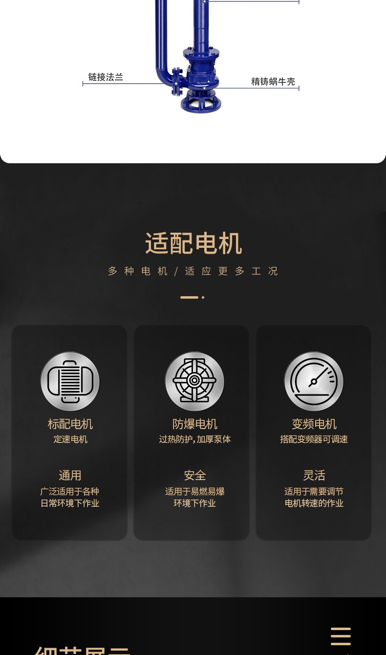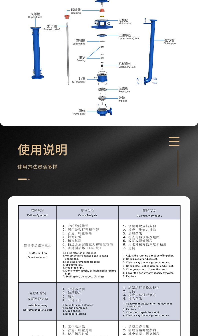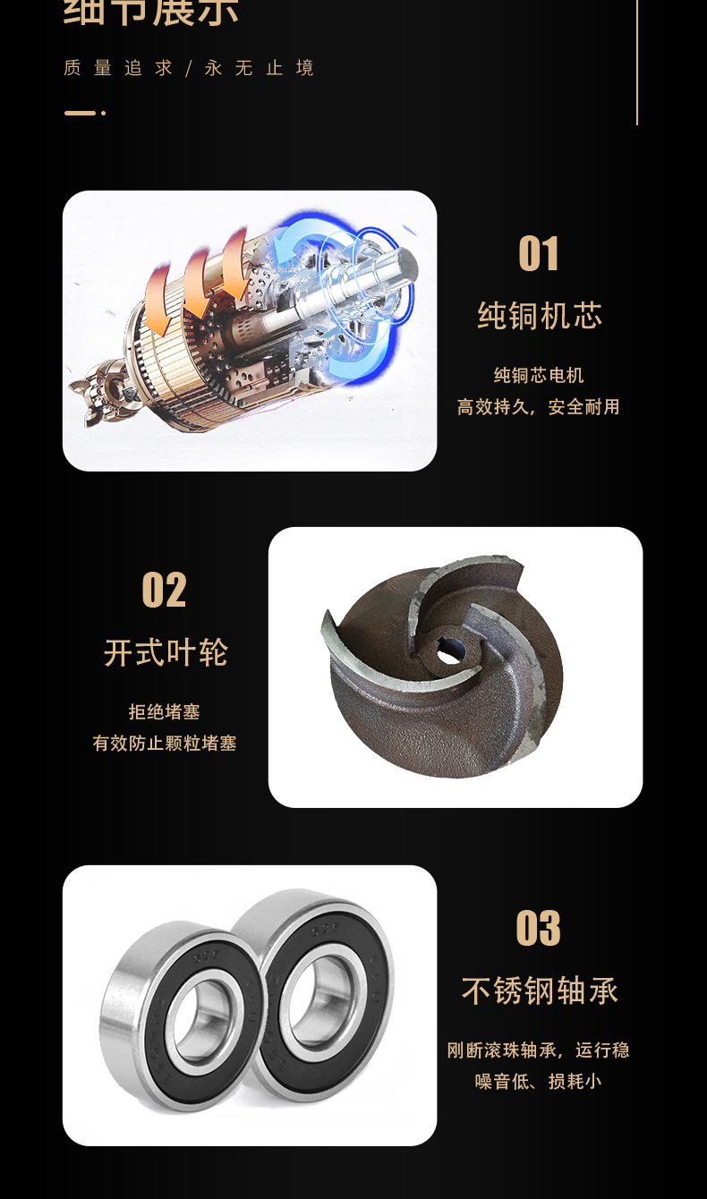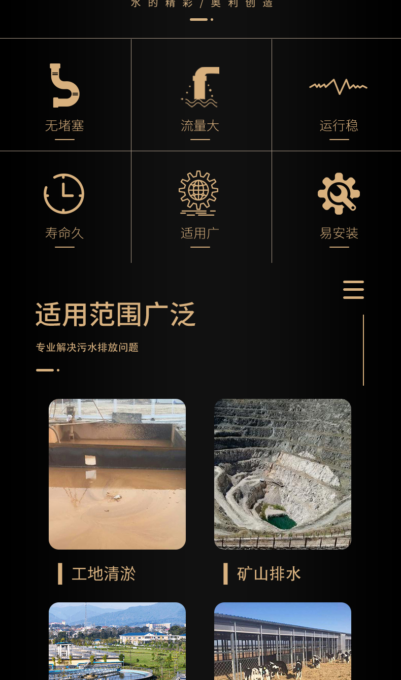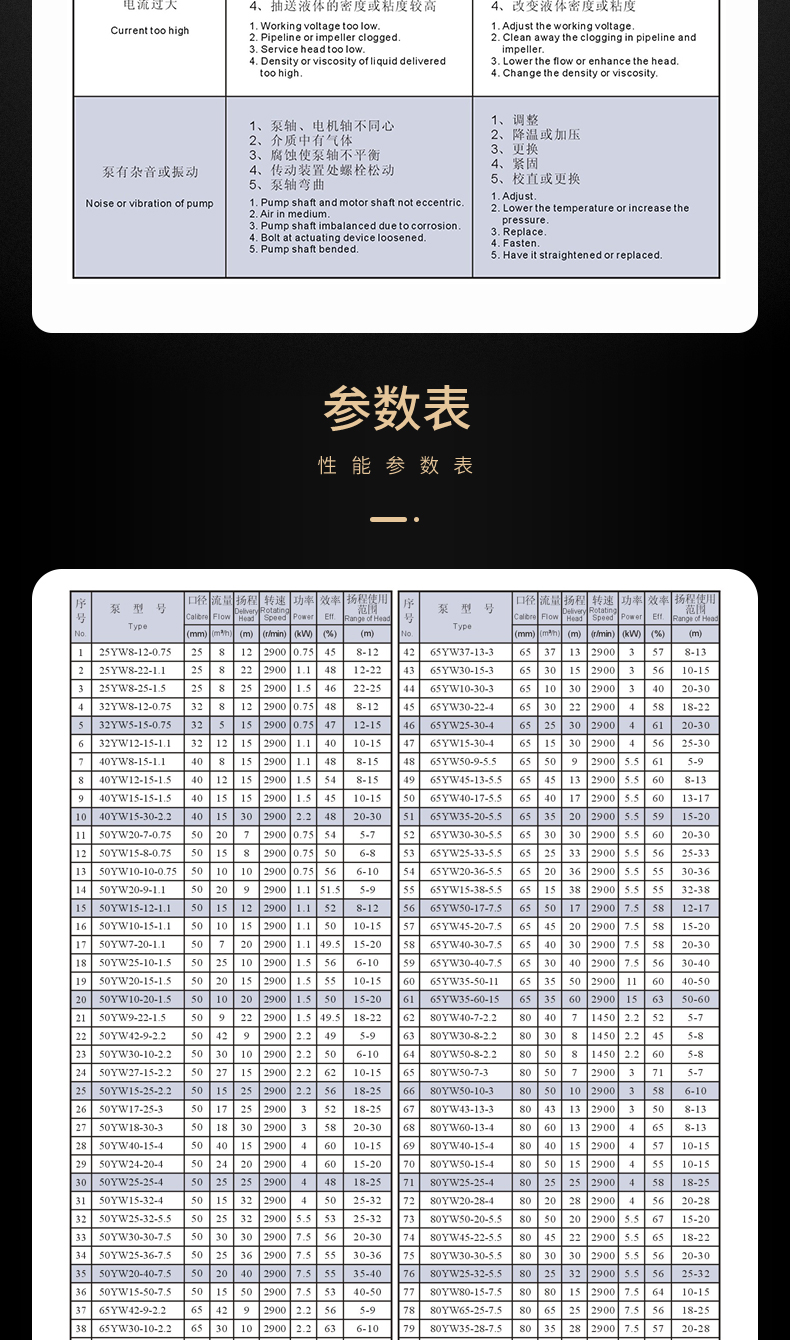 YW型無堵塞液下排污泵是在引進(jìn)國外先進(jìn)技術(shù)的基礎(chǔ)上,結(jié)合國內(nèi)水泵的使用特點(diǎn)而研制成功的新一代泵類產(chǎn)品,具有節(jié)能效果顯著、防纏繞、無堵塞、自動(dòng)安裝和自動(dòng)控制等特點(diǎn)。在排送固體顆粒和長(zhǎng)纖維垃圾方面,具有獨(dú)特效果。該系列泵采用獨(dú)特葉輪結(jié)構(gòu)和新型機(jī)械密封,能有效地輸送含有固體物和長(zhǎng)纖維。葉輪與傳統(tǒng)葉輪相比,該泵葉輪采用單流道或雙流道形式,它類似于一截面大小相同的彎管,具有非常好的過流性,配以合理的蝸室,使得該泵具有效率高、葉輪經(jīng)動(dòng)靜平衡試驗(yàn),使泵在運(yùn)行中無振動(dòng)。