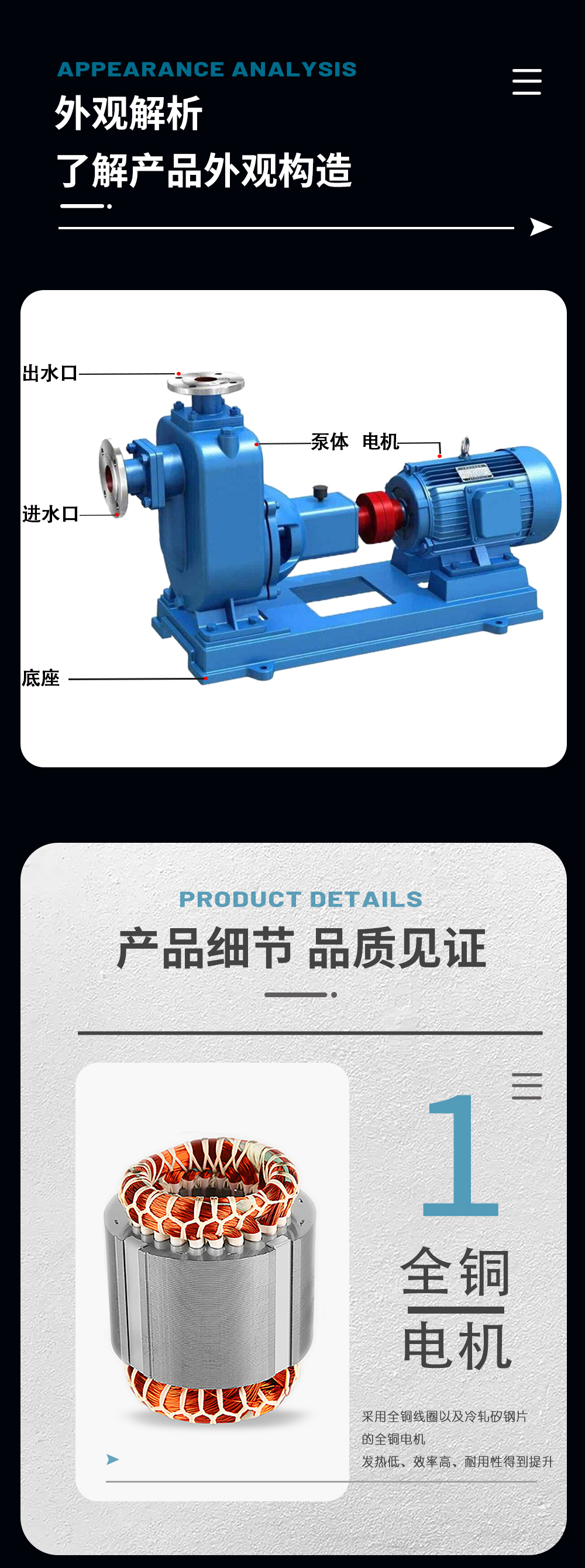 ZX系列型泵是臥式自吸泵。該型式泵 與其它型式的自吸離心泵比較,因?yàn)楸帽旧頉] 有逆止閥,結(jié)構(gòu)最為簡單;工作最為可靠;無 故障工作時(shí)間長,維護(hù)、使用方便、體積小、 重量輕、效率高、在設(shè)計(jì)上做了特別的考慮與 相同口徑的泵比較,排量大、性能高。在工農(nóng)業(yè)生產(chǎn)、搶險(xiǎn)救助,如排澇、救火中作為應(yīng)急泵使用效能更為突出。 廣泛適用石 油、化工、冶金、機(jī)械、化纖、食品、能源、交通等工業(yè)部門城市給水、亦可用于農(nóng)業(yè)排灌、 噴灌。供輸送清水或粘度小于5°E,溫度低于80℃物理及化學(xué)性質(zhì)類似清水的其它液體。